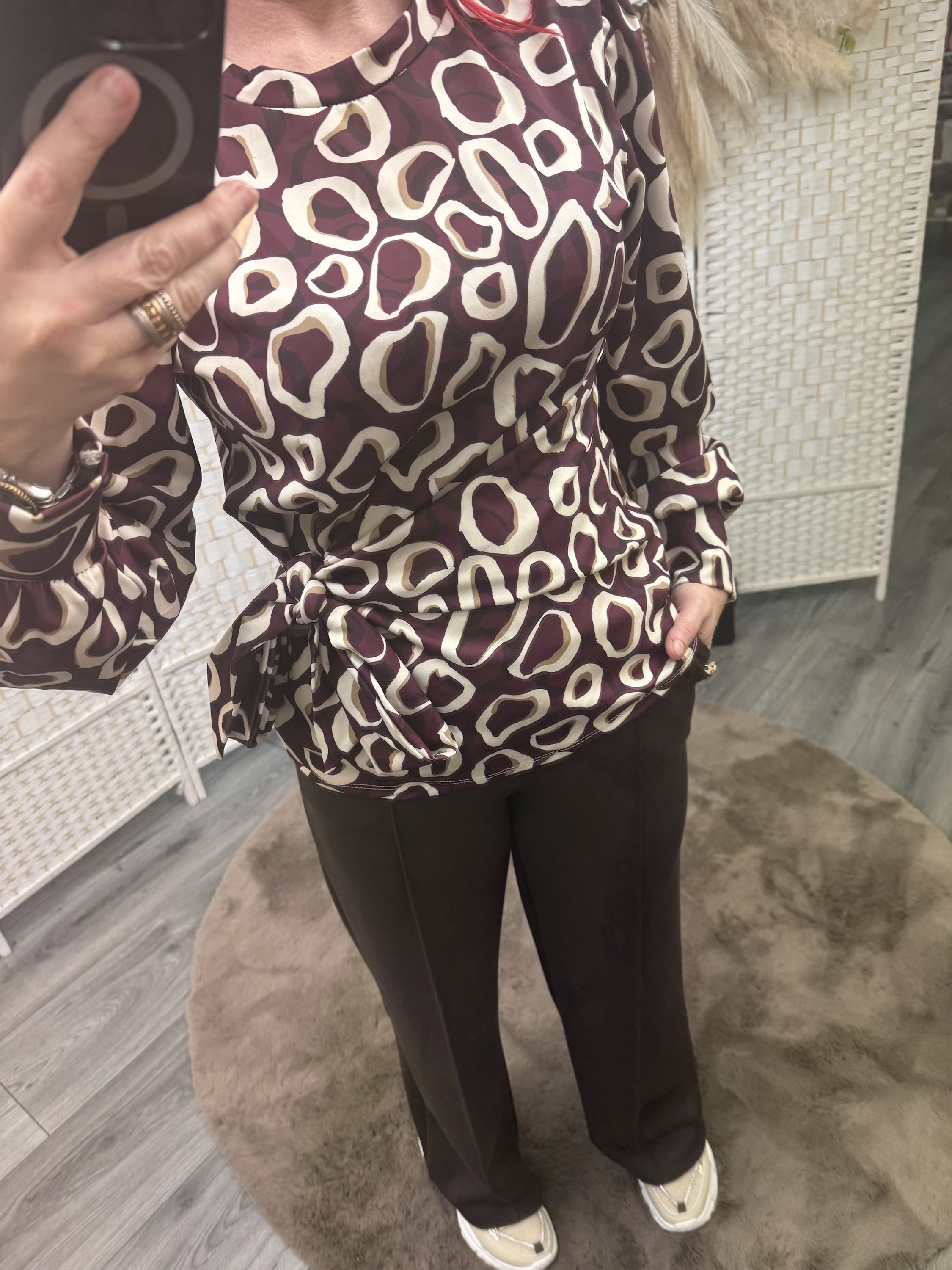 / Bordeaux print knot top