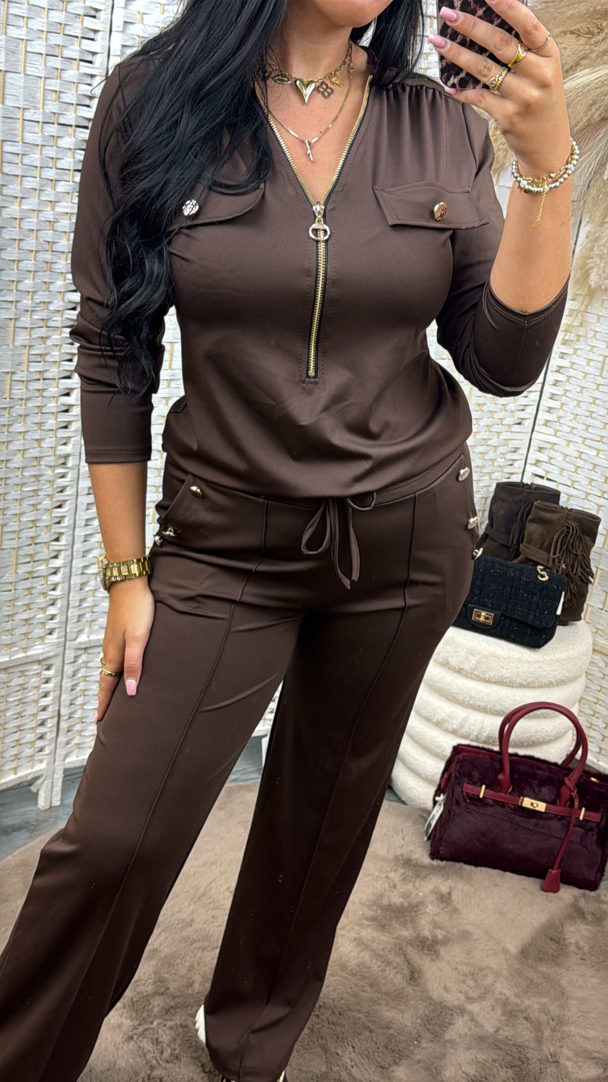 Emma zipper top bruin