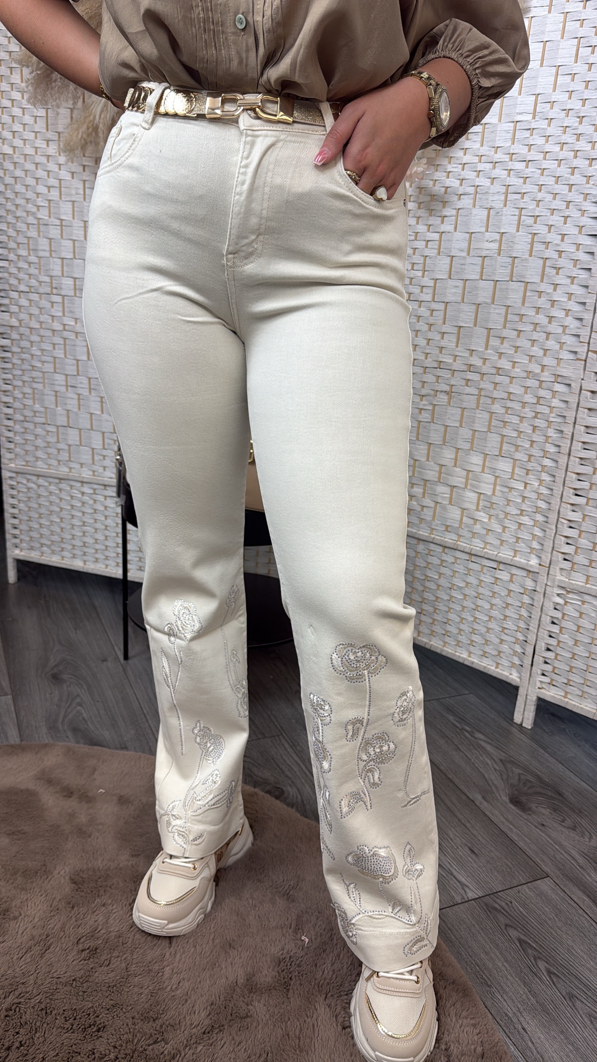 / Flower jeans creme