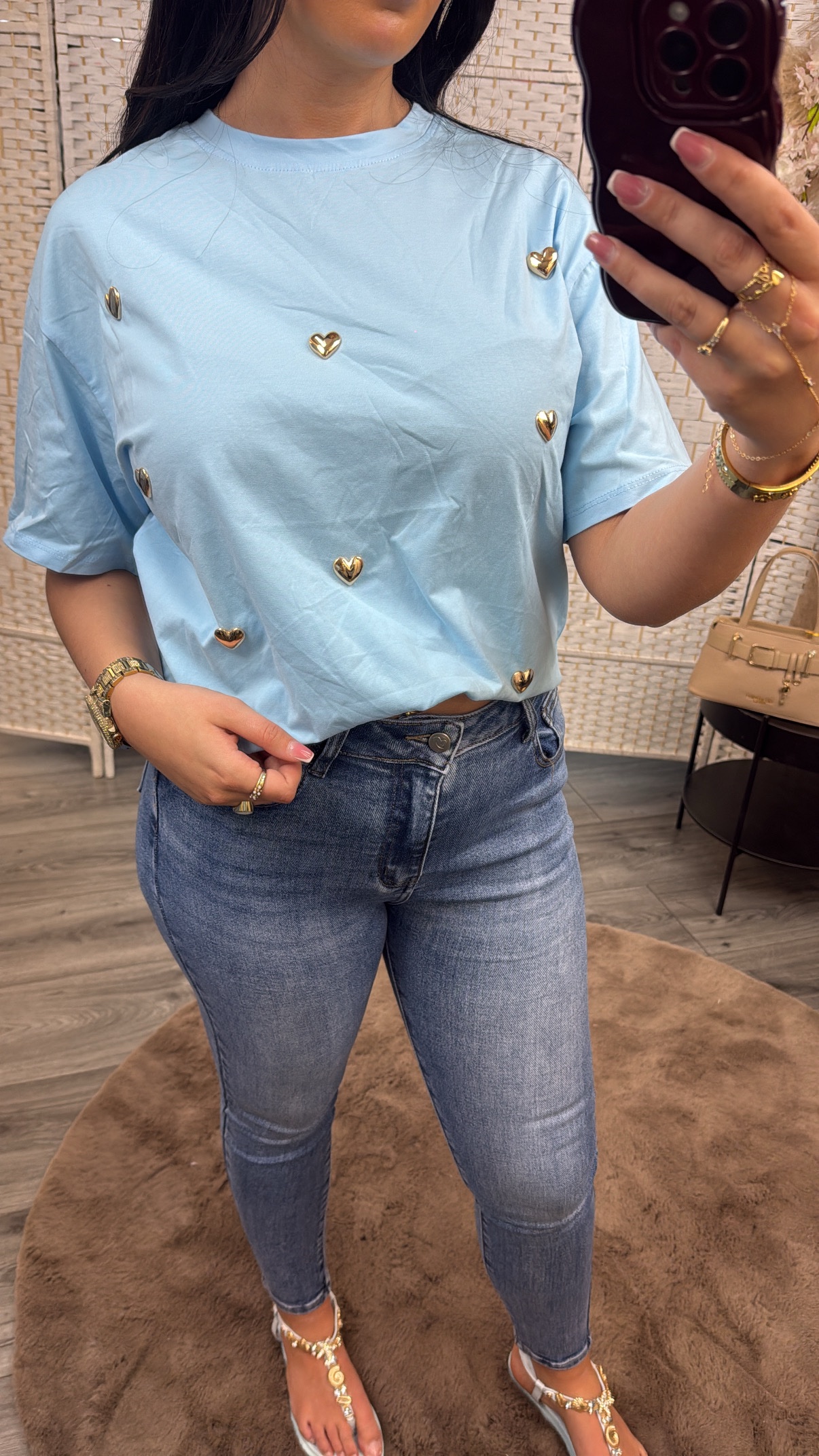 / Gold heart tshirt blauw