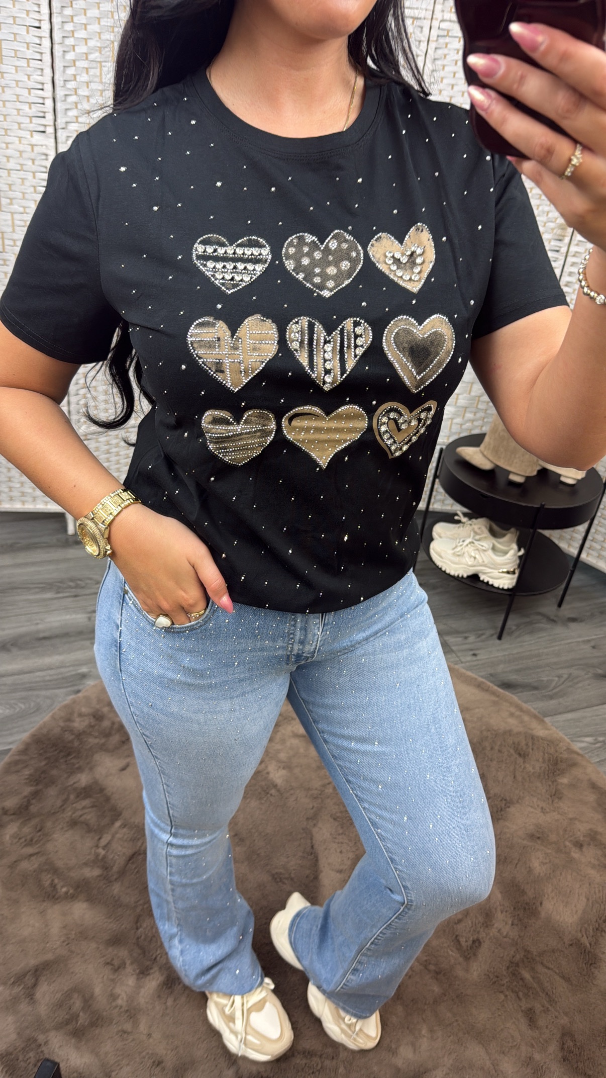 Heart diamond tshirt black