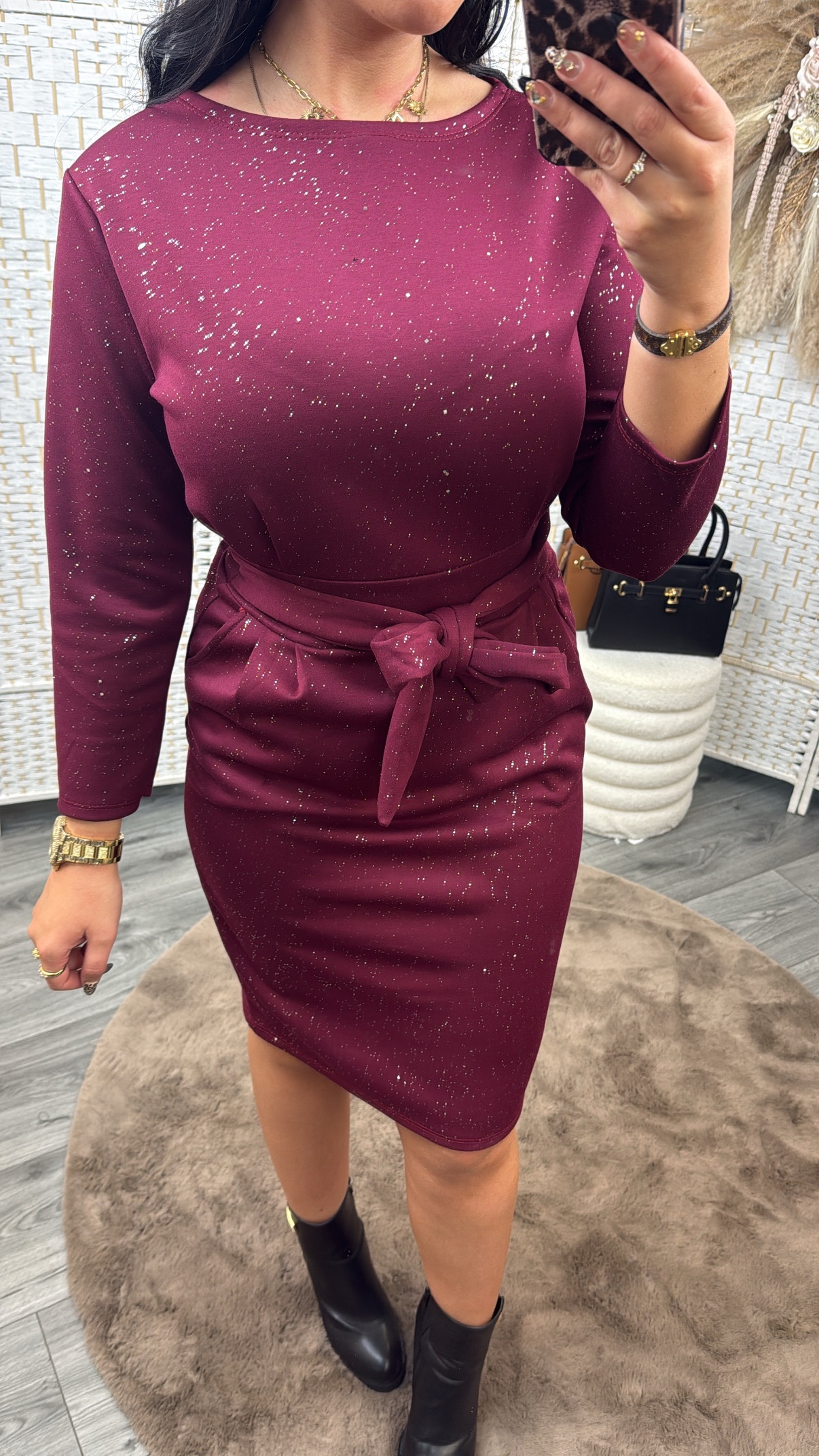 Leah sparkle dress burgundy