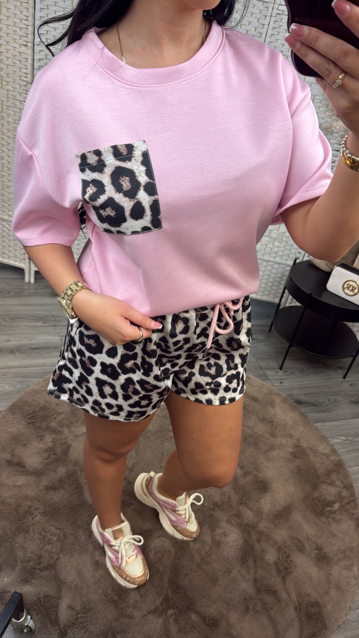 Het setje is een maat te dragen tot L/XL. Model is 1.67 en draagt normaal maat M. Broekje heeft een stretch band