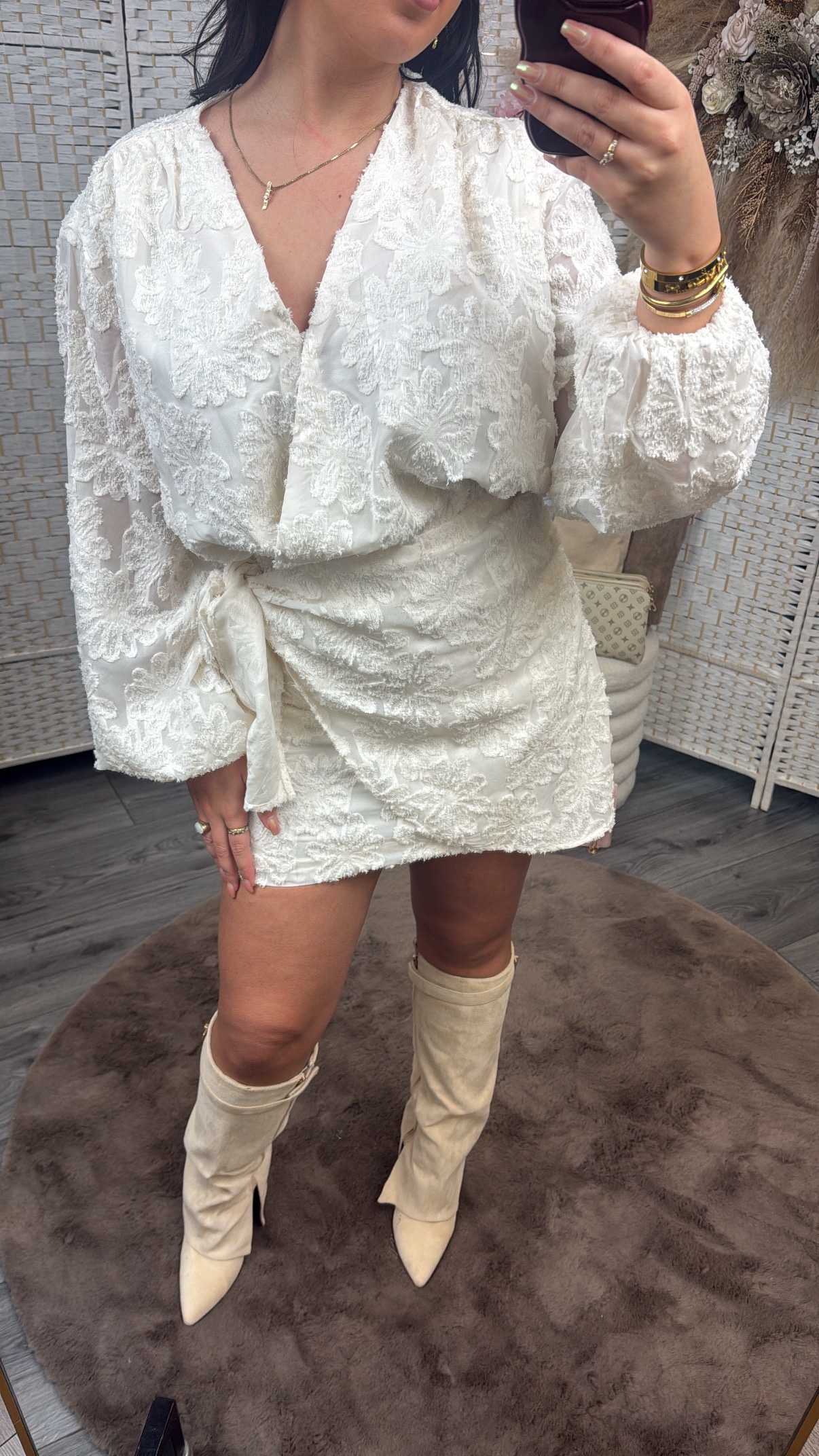 Oh wauwww.. hoe mooi is dit jurkje dan! Twijfel je tussen twee maten? Neem dan de grotere maat, het jurkje valt strak aan de onderkant! Heeft een rits aan de zijkant. Model draagt maat L.