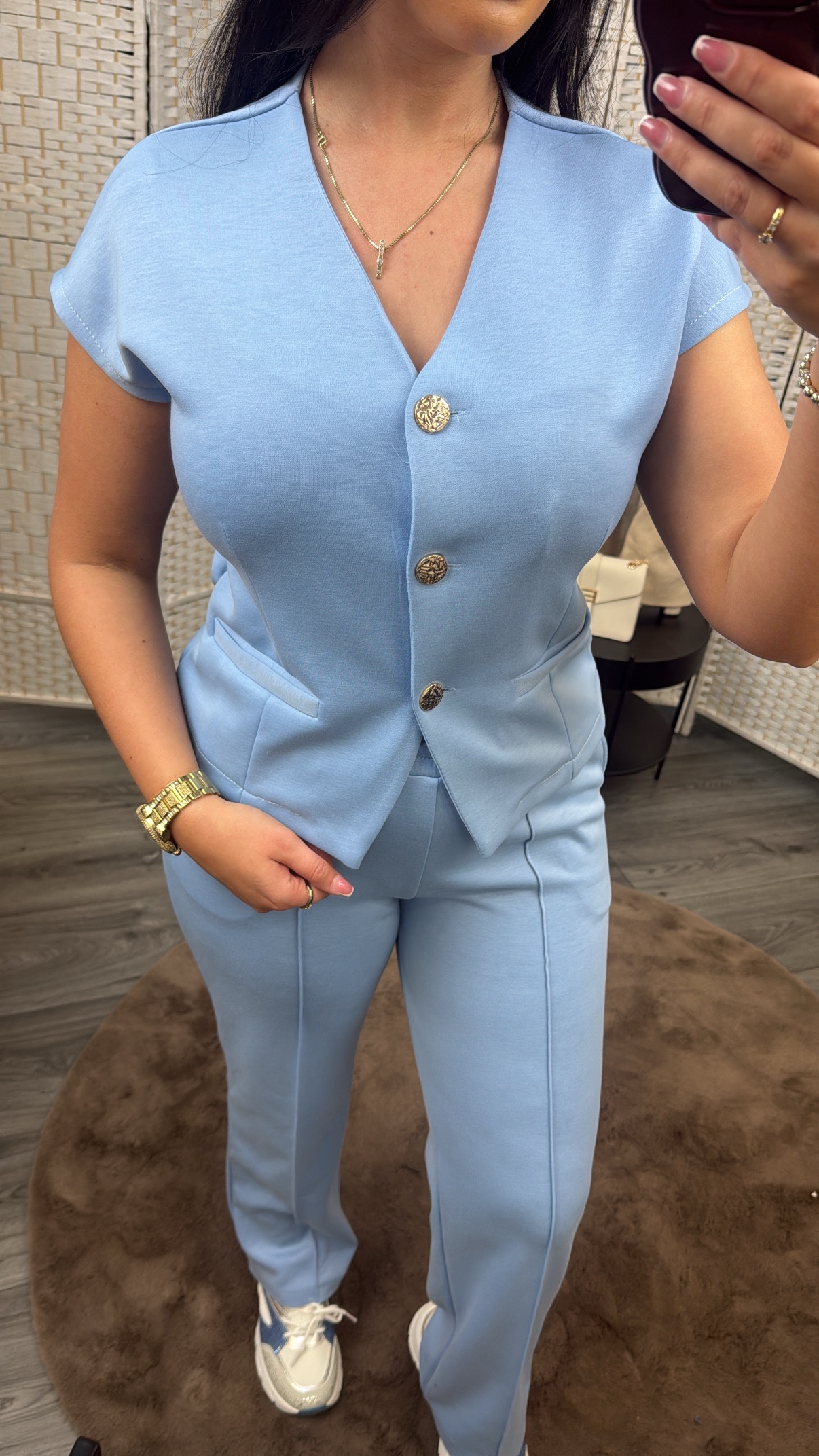 Comfy & toch stijlvol! Deze heerlijke jogging stof set is toch gewoon netjes om mee voor de dag te komen! Model draagt maat S/M van top & M van broek & is 1.67.