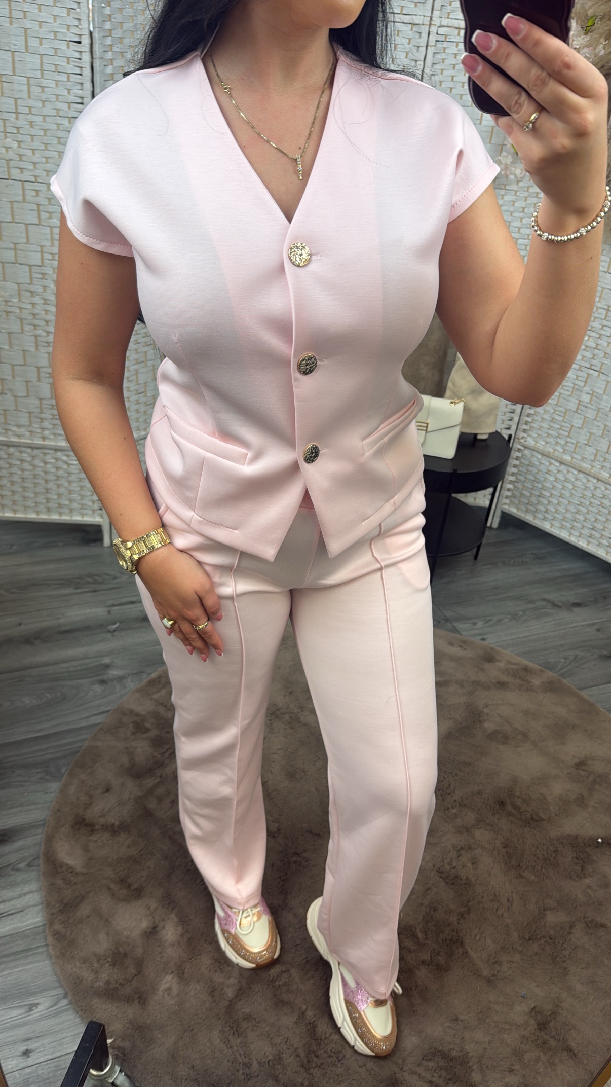 Comfy & toch stijlvol! Deze heerlijke jogging stof set is toch gewoon netjes om mee voor de dag te komen! Model draagt maat S/M van top & M van broek & is 1.67.