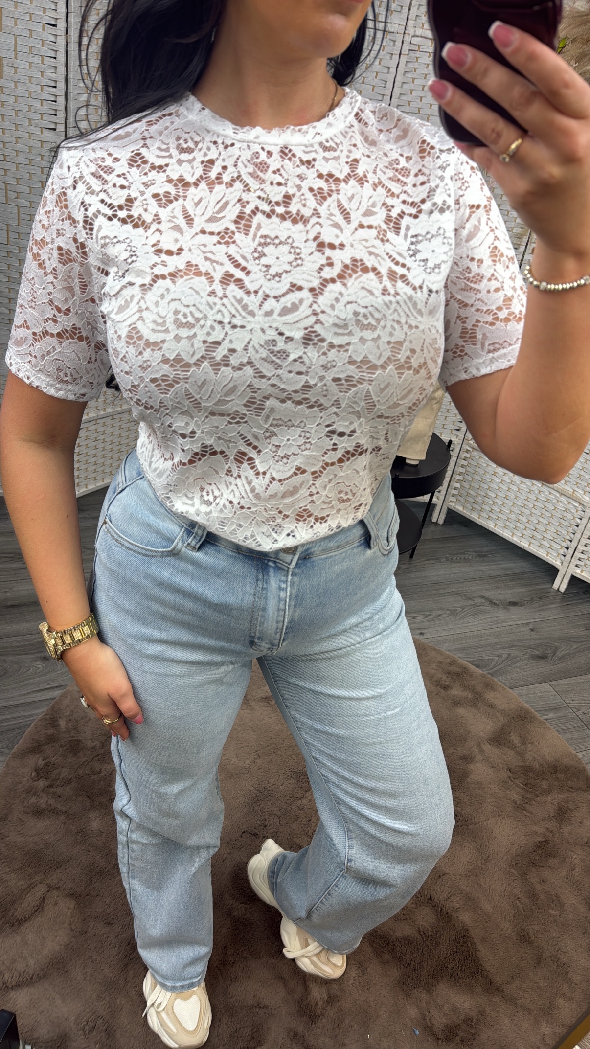 / Short sleeved lace top white