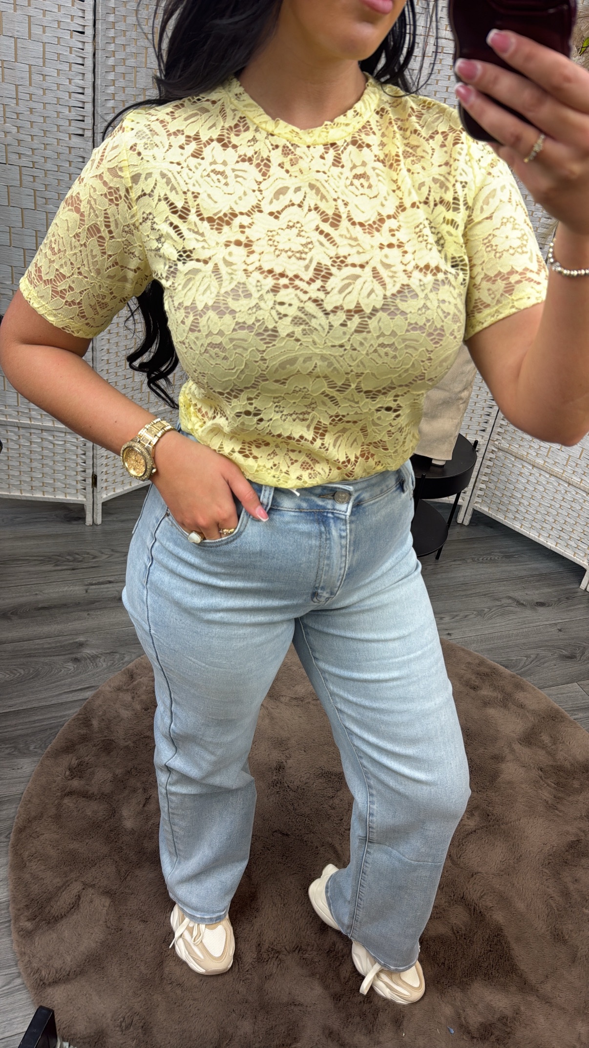 / Short sleeved lace top yellow