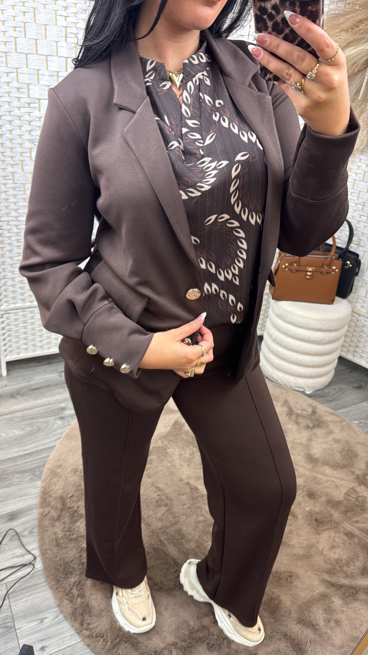 Twijfel je tussen 2 maten? Pak dan de kleinste maat! Leuk te combineren met onze Eva travel pant brown. Model draagt maat S van het jasje.